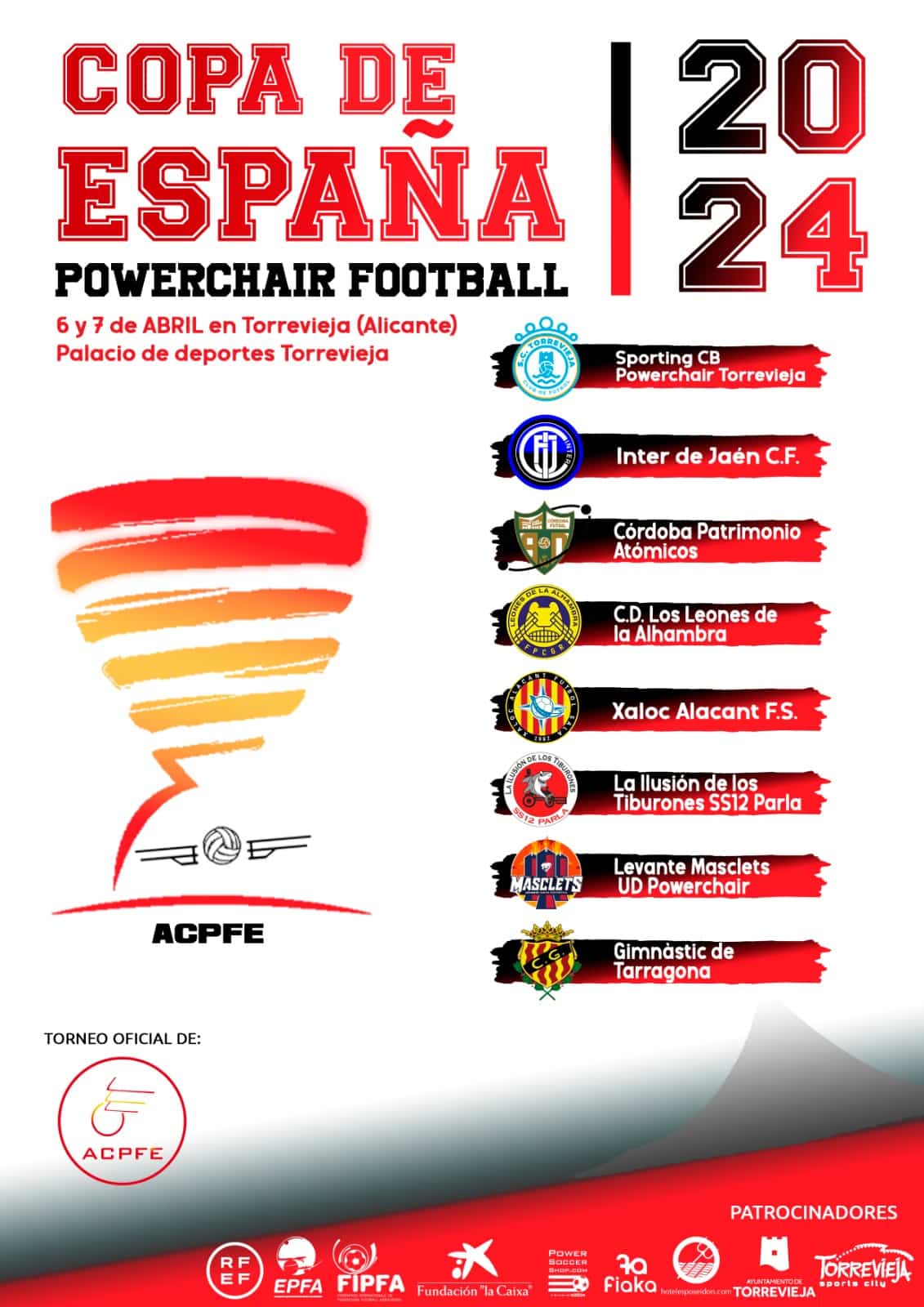La tercera Edición de la Copa España Powerchair Football se disputó en Palacio de deportes de la Ciudad de Torrevieja los días 6 y 7 de Abril del 2024.